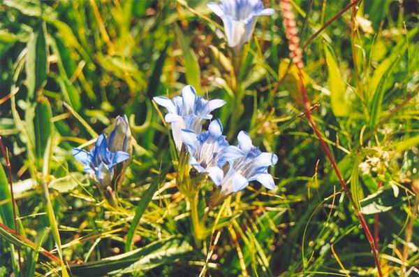 На склонах кусты поспевшего шиповника. У бурного ручья с мостом, текущего в