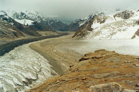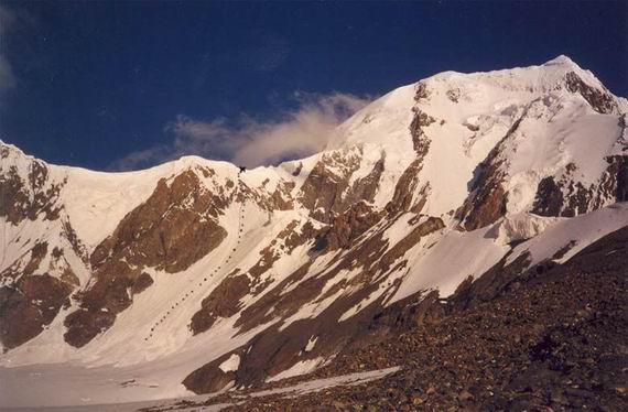 вернуться через седловину Иныльчекского перевала обратно. Китай чуть