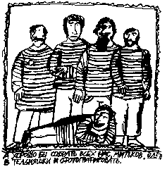 А хорошо бы,- сказад Митька,- собрать всех нас, митьков, одеть в тельняшки (я так и не понял, почему в тельняшки) и сфотографироваться; чтоб все были - я, ты, Володька, ты, Фил...