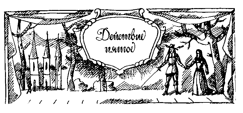 Шум голосов за дверью; затем врывается кавалер.