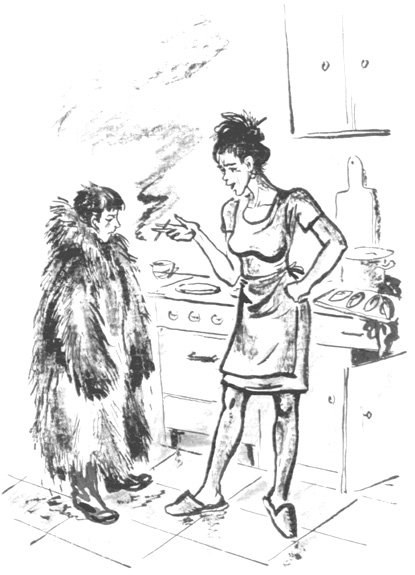 к полицейскому, весь мундир изгваздал грязными лапами. Мать притащила из