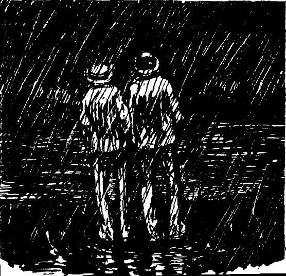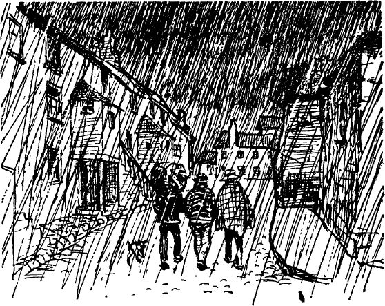 сточные канавы. Редкие прохожие, мокрые насквозь, торопливо пробегали,
