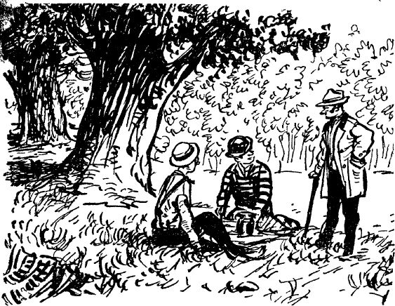 Двадцать минут спустя три человеческие фигуры, сопровождаемые стыдливо