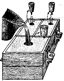 Для изготовления литейных форм из земли необходимо запастись литейным песком, который без особого труда можно достать в любом литейном цехе. Если же такого цеха поблизости нет, можно обойтись супесчаником, который представляет собой природную смесь песка и глины. Супесчаник немного увлажняется до такого состояния, когда он только начинает "держать" форму. Для проверки берем горсть супесчаника и сжимаем в руке. После этого земля должна сохранить в основном форму и следы морщин на руке. Чрезмерное количество воды крайне нежелательно, так как во время заливки металла будет выделяться пар, который образует в детали пустоты и раковины.