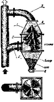 Я видел фотографии газовых потоков, возникающих между лопастями ротора. Вот гаа поток газа и частичек золы набегает быстро вращающийся ротор. Зола ударяется о его лопасти, скользит по металлу, как бы полирует его. Лопасти быстро срабатываются. Местами они утоньшаются до толщины бумажного листа. Были попытки использовать соударения пылинок и лопастей ротора для осаждения пыли, но сводились они к прикреплению на лопастях разных ловушек, лабиринтов и изгибов -- всего того, что пагубно сказывается на коэффициенте полезного действия дымососа. И все же заставить дымосос по совместительству вылавливать частицы золы-- задача разрешимая.