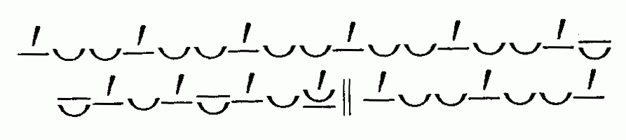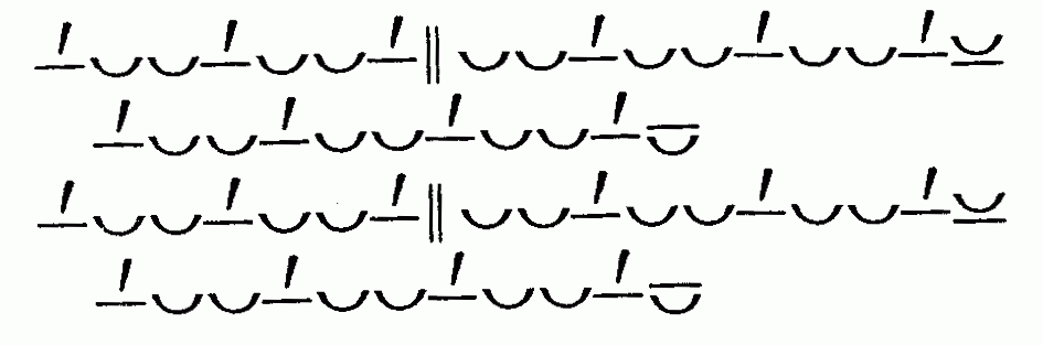 Состоит из "Большого Асклепиадова" стиха, повторенного четыре раза: