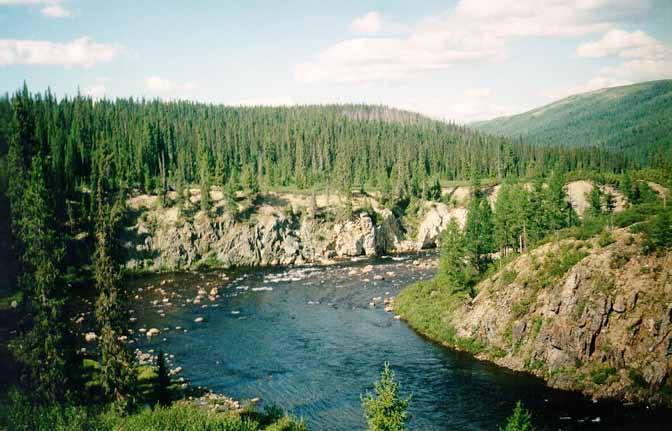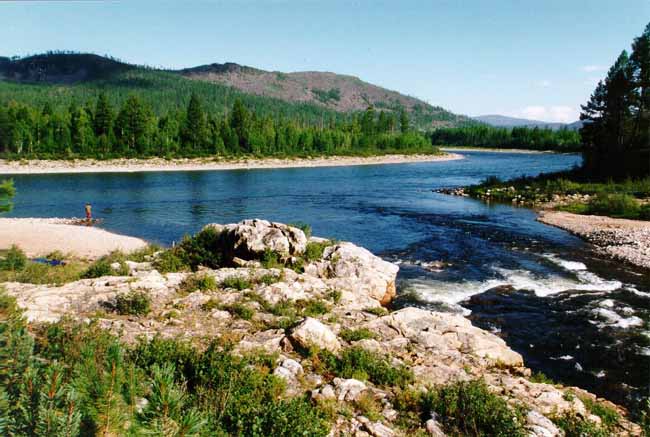 приобретает бурный характер, пороги и шиверы перемежаются плесами, иногда
