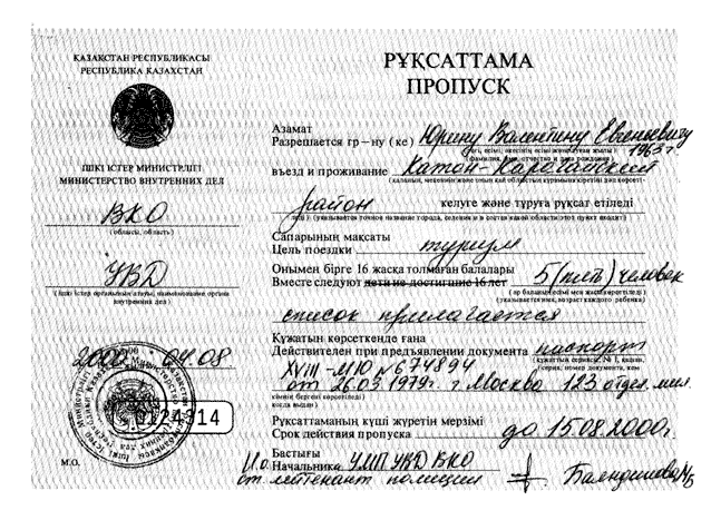Помимо пропусков в погранзону, "Экосистем" также автоматически регистрирует клиентов на временное пребывание по своему адресу. Настоятельной необходимости в этом нет, поскольку все приезжие обязаны регистрироваться в Усть-Каменогорске в течение 3 суток со дня прибытия; естественно, никто из туристов не собирается задерживаться в городе на столь длительный срок. Однако, по опыту работы компании, лучше это сделать на случай возможных осложнений. Нелишне будет также сохранить билеты, подтверждающие дату въезда в Казахстан.