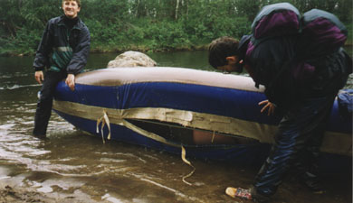 Выбор оптимального судна для такого похода задача весьма непростая, которая, видимо, не имеет точного решения. Наиболее подходящими можно считать не очень длинные полиэтиленовые каяки (Reflex, например, явно был великоват), каркасные каяки, ну и, наверное КНБ (с большими оговорками). Таймень с не облегченной (резиновой) шкурой - лодка явно не подходящая, катамараны тоже - речка слишком мелкая и каменистая, расход небольшой.