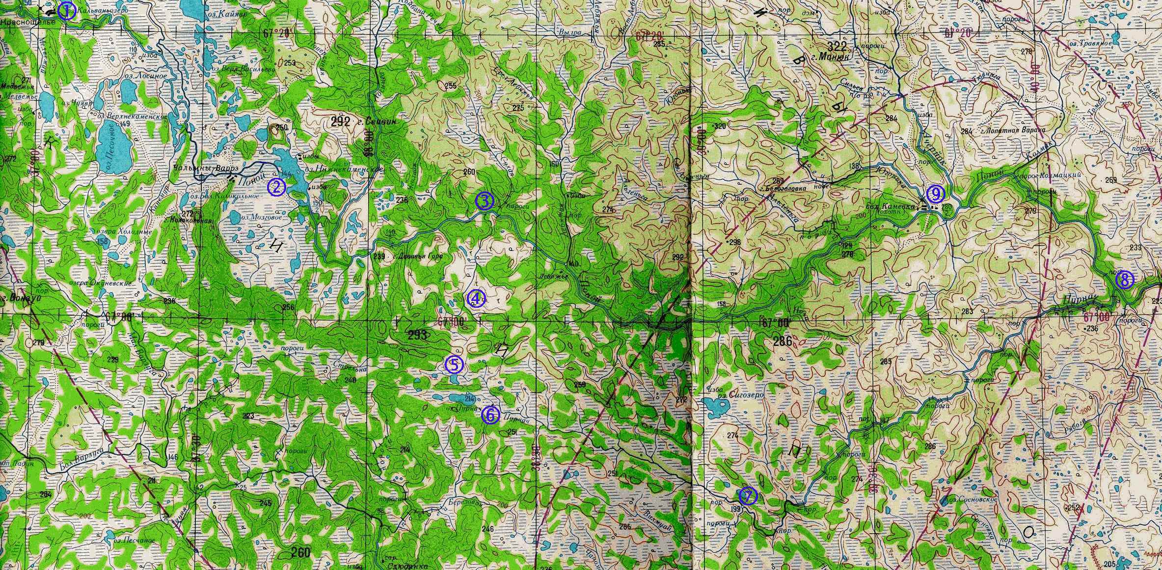 Кольского п-ва. Наш маршрут показан на фрагменте листа