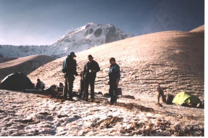 заночевали под перевалом. Сидим ждем Якуба с лошадьми в надежде