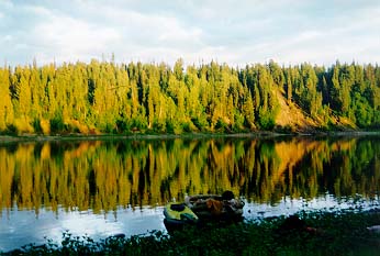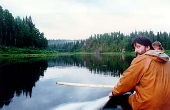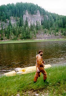 О деньгах - во-первых, милые уральские речники строят из себя монополию - билет на человека с багажом - примерно 80 Круб по ценам 96 года (!), во-вторых - весь маршрут проходит по территории нац.парка - посему на вокзале в Печоре висит большой плакат - мол раскошеливайтесь - мы позвонили ночью тамошней служащей - в итоге - по 5 Круб с носа в день (умножили - ну-ну !!!), иначе на ту же сумму обувают егеря нац.парка - на Подчереме таковых встретилось нам двое (самый колоритный - инспектор Гаврилов, прямо как из старой байки - вам чаю сколько? Полкружечки. А кипятку сколько наливать? С тех пор чай по рецепту пачка на кан - гавриловка, или чай по щугорски. Плюс получасовая лекция о лайках, и называние эрделя, что был с нами, "кастрюлей". Ежели увидите - привет от прошлогодней группы москвичей), а вот на Щугоре - ни одного (!!!) - несмотря на все жуткие рассказы об опергруппах - так что на Щугоре спининги и ружье прятали зря. В чем плюс - в конторе нац.парка можно отксерить двухкилометровку любой территории - в Москве нам такой карты найти не удалось (это к воросу о волоке - мы то шли иначе - Подчерем - Тэльпос - Щугор, т.е. минуя верховья Щугора - ну этот то маршрут вообще нечто невообразимое - скажу только, что в два дня волока мы не уложились - итого почти трое суток волока по азимуту (в смысле без тропы)).