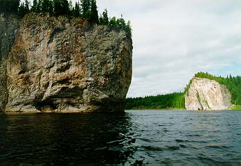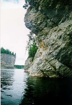 Когда мы прошли избу Летняя, нас догнала и перегнала группа московских байдарочников. Встали в 21.20 на высоком берегу напротив скал. В этом месте оказалось очень неплохое эхо. Вечером Билл долго пытался его перелаять.