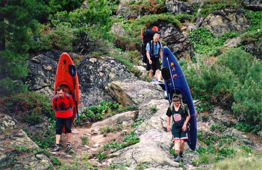 на полиэтиленовых каяках, по крайней мере, перевала Чертовы Ворота на пешке.